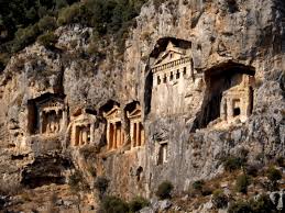 On the way, we went past some spectacular rock tombs, which had been carved into the rock face by the ancients, to act as mausoleums. They varied in size and elaborateness, from simple holes to miniature temples. Ahmed was explaining that the size of the tomb varied according to the occupant's status in this life, and then exclaimed: "You know, it really doesn't matter. We have a saying in Turkey: 'Your last shirt has no pockets.' In other words, you cannot take anything with you."